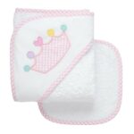 Made from ultra-soft, pure cotton terry, this towel is gentle on your baby’s sensitive skin—perfect for cozying up after a warm bath or a dip in the pool. It’s big enough to grow with your little one, lasting all the way through their toddler years! The cozy hood features a soft pique fabric that’s perfect for adding a monogram (for that extra personal touch) and backed with fluffy terry cloth for extra absorbency. Plus, the matching washcloth is trimmed with coordinating fabric to complete the cutest bath time set ever!