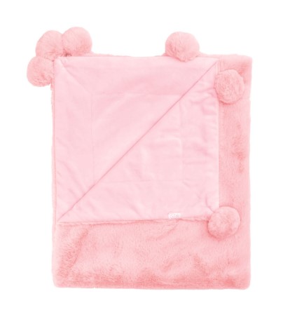 So soft fur blanket with luxe minky backing and pom-pom edge.
