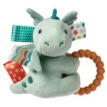 Faux fur plush cuddler features minky front pocket to hold attached wooden teether. Ages up to 18M.