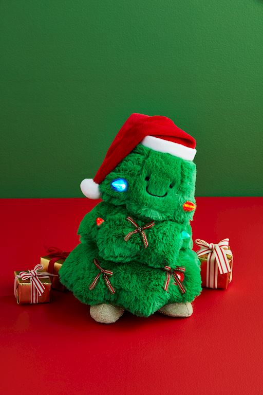 Description: Plush minky Christmas tree lights up and sings when activated. Requires 3 AA batteries, not included