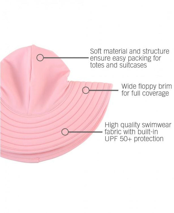 This ultra girly swim hat has built in UPF 50+ sun protection to keep your baby girl extra safe from the sun’s harmful rays. All sizes feature functional ties and can be styled two ways: tied under the chin to ensure a snug fit or tucked up through the brim and tied in the back in a fun bow!