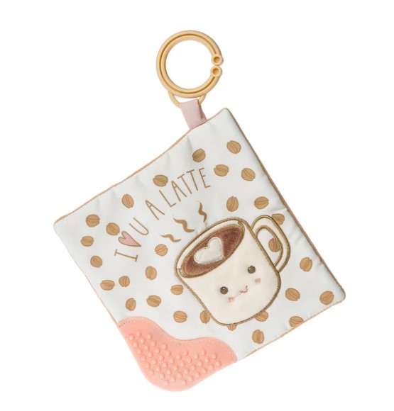 A soothing activity toy for curious babies. Simple activity toy with sewn in teether and metallic embroidery. Each Crinkle Teether has fun character appliques and colorful patterns. Baby safe embroidered details.
