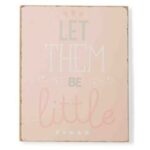 Painted wood wall décor features traditional sayings and original graphics. Distressed finish creates old-world rustic charm. Use one piece as a sweet nursery accent or